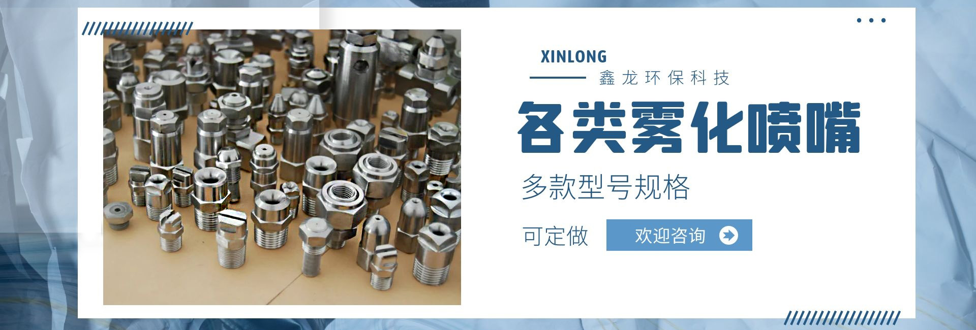 深圳市鑫龍環(huán)保科技有限公司是專業(yè)從事各類噴嘴研制和開發(fā)的廠家,技術(shù)力量雄厚,生產(chǎn)工藝先進(jìn),檢測手段齊全,管理制度嚴(yán)格,產(chǎn)品質(zhì)量穩(wěn)定可靠。產(chǎn)品種類多達(dá)上萬種,適用于涂裝處理、環(huán)保、線路板、電子電力、汽車制造、家電制造、造紙業(yè)、紡織業(yè)、防火等行業(yè);我公司產(chǎn)品不僅為國內(nèi)多家大中型企事業(yè)選用,還配套外銷日本、美國、東南亞等國家和地區(qū)。我們具有本行業(yè)前衛(wèi)的噴嘴制造設(shè)施,在我們裝備完善的噴嘴實驗室,可以進(jìn)行各種類型噴嘴的測試研究,以優(yōu)化噴霧系統(tǒng)的性能。我公司提供專業(yè)技術(shù)、應(yīng)用和售后服務(wù),幫助用戶選擇適合的噴嘴,并保持噴嘴在良好條件下運行。從噴嘴選擇指導(dǎo),到量身定制的設(shè)計,直到噴霧顆粒的測試分析,在每個訂單中都包含了我們好的技術(shù)支持,用戶反映:我司顯著的特點是銷售工程師在幫助用戶降低成本、減少加工和維修時間,降低工業(yè)用水和化學(xué)劑消耗等方面有著非常豐富的經(jīng)驗,使用戶可以更經(jīng)濟(jì)、更有效的解決實際問題!我們繼續(xù)堅持專業(yè)是金的理念,制造好的噴嘴是我們永遠(yuǎn)的追求和努力!
